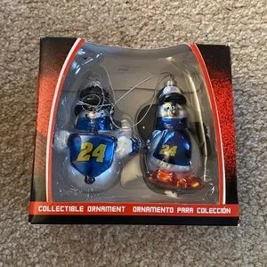 Set of 2 Jeff Gordon 24 nascar snowmen ornaments. In original box, slight damage to box shown. Otherwise in great condition