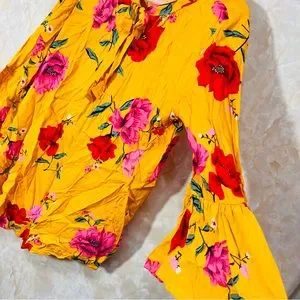 Old Navy yellow floral Hawaiian blouse size small. Super cute and comfortable. Great condition. Bundle and save :)