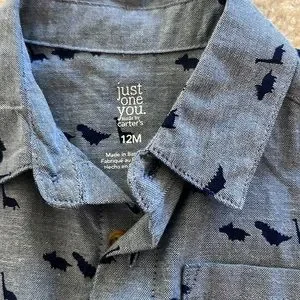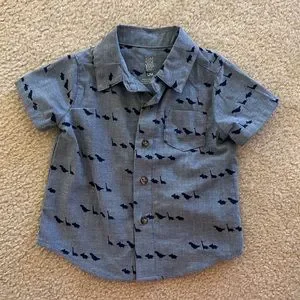 Excellent condition only worn once. Chambray Dino short sleeve button down with olive green shorts. Size 12M.
