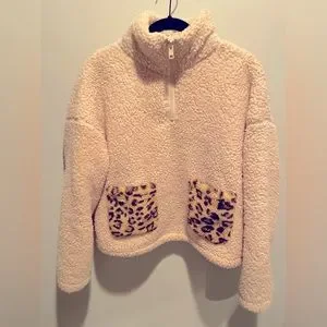 Sadie & Sage Sherpa pullover with mid neck zipper. Animal print pockets. Size small. So soft and cute! Gently worn but no damages. Smoke free home