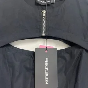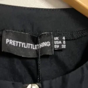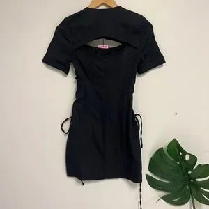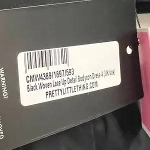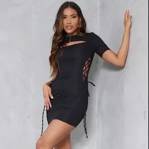 prettylittlething Black Woven Lace Up Detail Bodycon dress