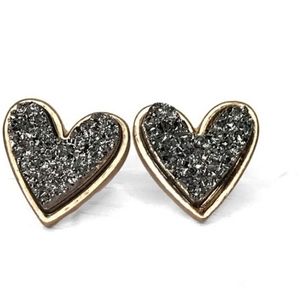 Whether you’re dressing up or down, these earrings will add that perfect touch of elegance to any outfit and perfect for Valentine's Day! Lab created faux druzy stone, lightweight, beautiful shine, dainty, heart shape and nice touch of texture. Base metal, lead and cadmium safe.