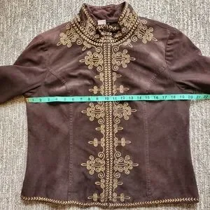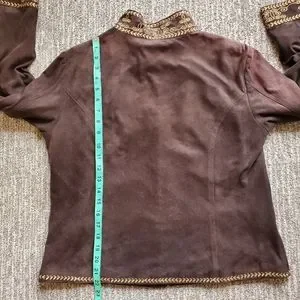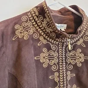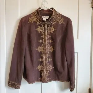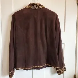 EUC Vintage Coldwater Creek Faux Suede Gold Emboidered Lined Zipper Jacket