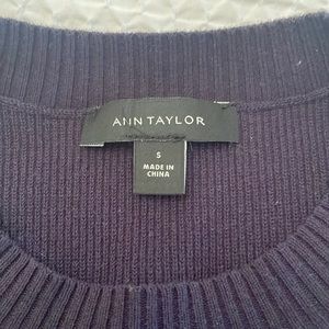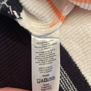 Ann Taylor Striped Sweater Pencil Skirt and Tank Set. Top is size Small. Skirt is size Petite Small. Navy blue with grey, white and orange/ salmon and light pink stripes. Elasticized waist band. Comfortable stretchy fit. Will sell separately or as a set. Excellent gently used condition. Smoke and Pet free home.