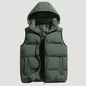 Army Green Casual Mens Drawstring Hooded Puffer Vest Coat