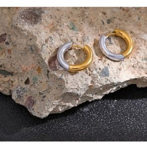 NEW 18K Gold Plated Two-Tone Silver + Gold Small Hoop Earrings
