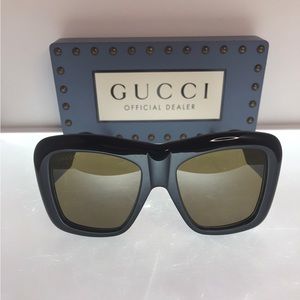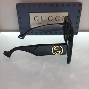Gucci Black GG0498S Oversized Sunglasses These oversized sunglasses from Gucci boast superior quality and an amazing style. Crafted from acetate and gold-tone metal, they feature high-grade lenses and the GG logo for a luxury hint. They are perfect to add to your prized sunglass collection!