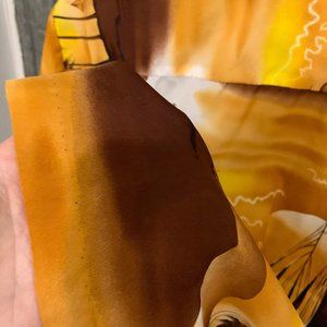 Vintage 60s Rai Nani Hawaii super cool men's Hawaiian shirt in mellow sailboat pattern of brown, yellow and white. Hipster, hippie unisex short sleeve collared button up shirt. Made in USA. There is some pilling at the very bottom of the back of the shirt.