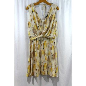 White House Black Market Women's Yellow/Multicolor Sleeveless Faux Surplice Front Dress. Size 8, very good condition. Tie at back neckline. Zipper back. 100% polyester.