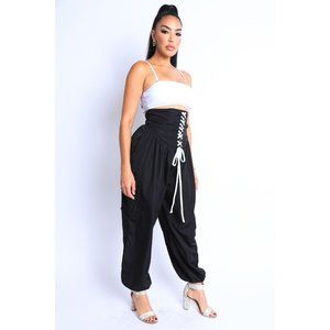 Women's Casual High Waist Cargo Pocket Drawstring Snatch Me Jogger Pants Comfy