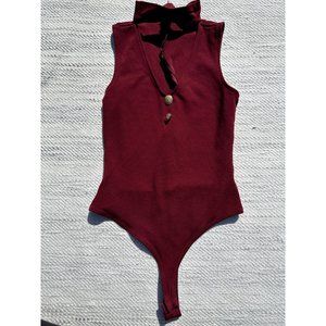 Lulu Womans Small Bodysuit Burgundy Powerhouses V Neck Sleeveless Pull On Modern