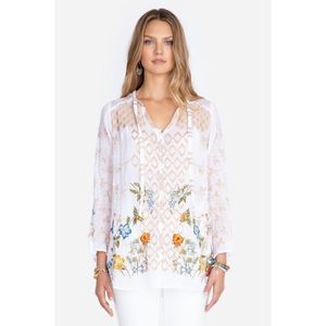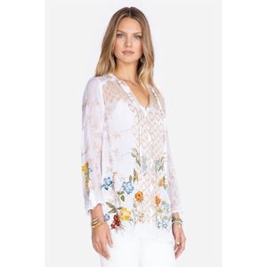With a tangle of wildflowers and delicate Bohemian details, the lightweight Luca Blouse is the perfect Spring staple. Johnny Was White Rayon Luca Blouse