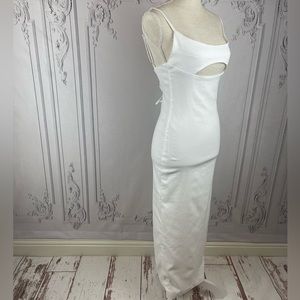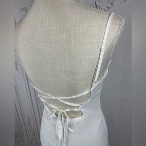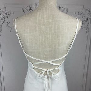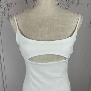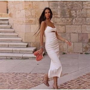 Looking for something simple but still want to stand out in the crowd? This Shockingly Pretty midi white dress is all things hot and fierce. With details such as a cut out under bust, sexy spaghetti straps which criss-cross - you'll have to get you hands on this!