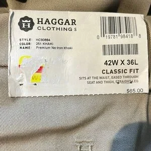 Haggar Pants Khakis Classic Fit Flat Front No Iron Expandable Waist Size 42x36