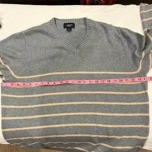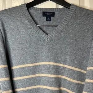 Men’s Lands’ End Gray with Tan Stripe Sweater
