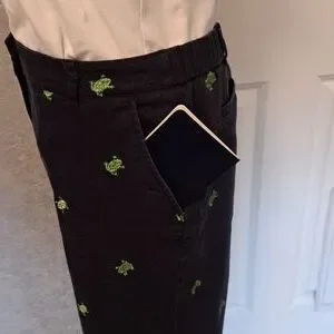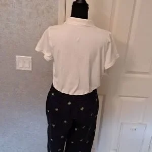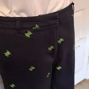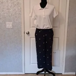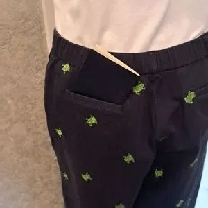 Briggs New York Size 12 cropped pants with small green frogs and White Button Do