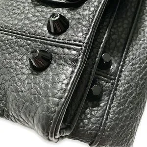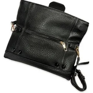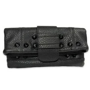 Black Leather Gunmetal Rivets Clutch Crossbody Bag NWOT