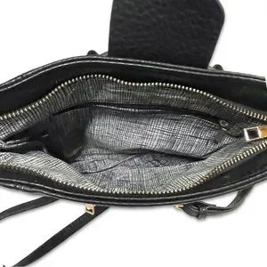 Unfold + see zip pocket with gold loop to attach strap for crossbody option-strap adjustable