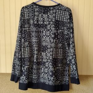 Vintage Lands End sweatshirt. Size 14-16. Blue with white design all over. Sleeves and waist have elastic at ends. In great condition. Free of rips, tears and stains. Smoke-free home.