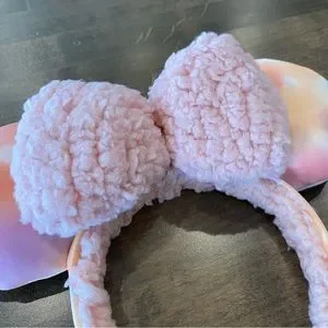 Tied dye Minnie Mouse ears headband with pink Sherpa bow. New with tags from Disney Parks. Please carefully review each photo before purchase as they are the best descriptors of the item. My price is firm. No trades. First come, first served. Thank you! :)