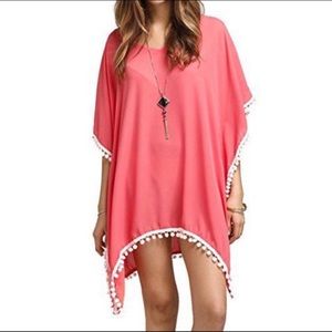 *SOLD* NWT Adreamly Chiffon Pom Pom Swimsuit Cover Up Sheer Coral Size S