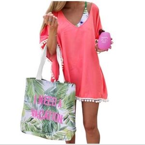 NWT Adreamly Chiffon Pom Pom Swimsuit Cover Up Sheer Coral Size S. Swimsuit cover up, sheer, pom pom trim along the hem, lightweight, v-neck.