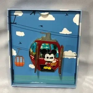 Disney Parks, Loungefly, Funko Limited Edition Mickey Mouse Skyliner Hinged Enamel Pin New in Box Limited Release, Mickey waving and riding a skyliner. Doors open and close on hinges.