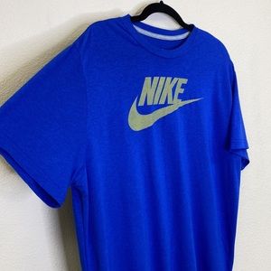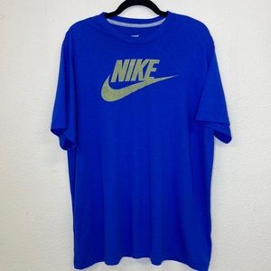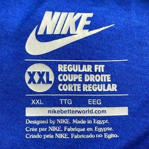 Nice short sleeve tee shirt by Nike in men's size XXL. Blue with yellow striped logo. Regular fit. In great pre-owned condition. Please see pictures and contact me with questions. Thank you for looking.