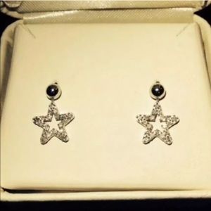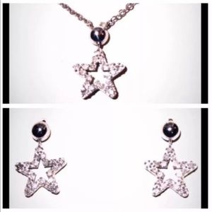 Bundle: New, beautiful 14K white gold diamond star pendant necklace ($310). 18" Chain. New, beautiful pair of white gold diamond star earrings ($290). Carat weight: .25 each (.50 total). Both new in original box with sticker price tag and info. Hard to get a photo of how much this necklace and earrings sparkle! Retail tag total: $600