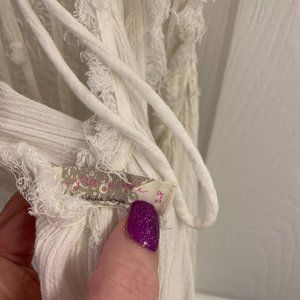Boho Free People White Embroidered Tank Top Size Small