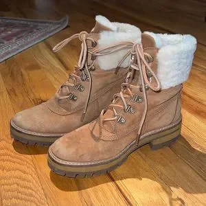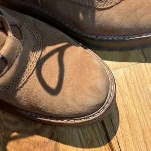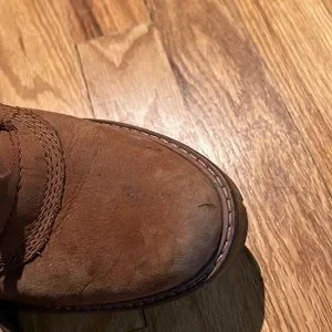 Couple marks on the front of the shoes! Priced accordingly. Definitely warm for the winter! Size 6! True to size. Original brown/tan color
