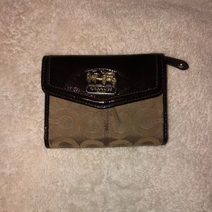 Small coach wallet, with six card slots and a slot for your ID or drivers license. Also has a zipper in the back for change, etc.