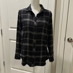 Athleta Black and White Plaid Flannel Button Down