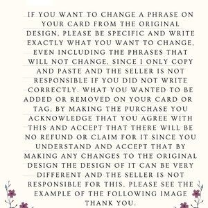 These Cards are made to order, they are not ready to ship immediately, when you make your purchase you understand and understand that there will be no type of claim or return of the product unless an error is found on the part of the seller, Make sure to write correctly its personalization, since the seller only copies and pastes and does not send any type of message to confirm if it is okay.