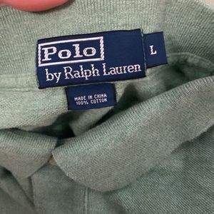 Size large Ralph Lauren Polo shirt. Heather we green color with orange logo. In great condition.