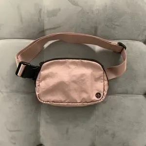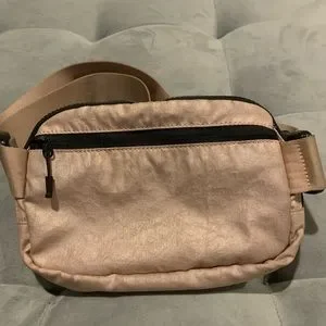 Authentic lululemon everywhere belt bag released in 2018. It is a muted peach rose gold subtle pink color. Subtle Shimmer. Can be worn as Fanny pack or crossbody shoulder bag. Matte black metal hardware. Original strap! Only visible wear is on zipper as pictured and barely on strap. Hollow logo.