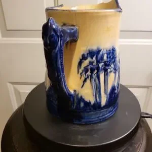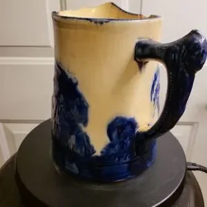 Check out this awesome Antique Old sleepy eyed Joe blue and white ironstone pitcher 1900-1930. Approximately 7.5"×7.5". Vintage condition with obvious distress,cracks and breaks. Still it's a cool decorative piece. Make an offer, you deserve this.