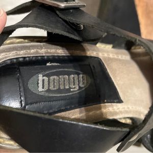 BONGO Leather Chunky Wood Platform Sandals Black - Size 10M