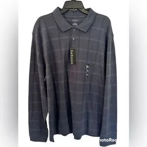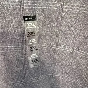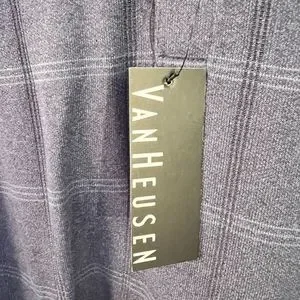 Brand new with tags Van Heusen Jasper Windowpane Longsleeve quarter button down shirt in the color blue jeans. A true navy blue. Size XXL.