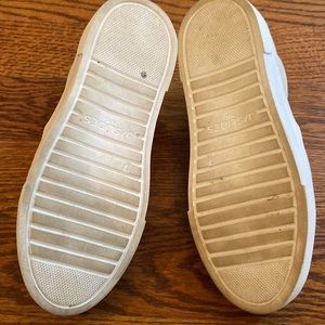 Excellent preworn condition - only worn 1-2 times. Purchased from Nordstrom. Come with all original packaging. Incredibly comfortable white leather with cushy platform soles. Unfortunately did not conform to my dress code at work but already wore outside so can’t return.