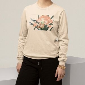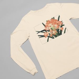 Japanese Clivia Miniata Flower Print Long Sleeve Graphic Tee T-shirt S M L XL