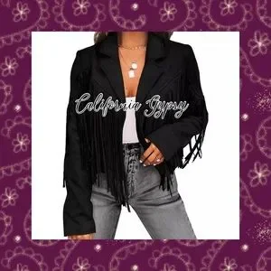 New stunning faux leather suede fringe jacket. Gorgeous western bohemian chic style. Check out my closet for more clothing, accessories, and jewelry. Bundle and save on shipping, plus get an additional discount. The more you bundle the more you save!