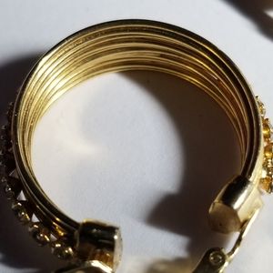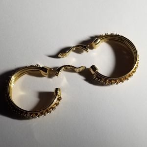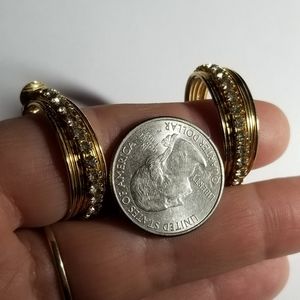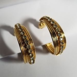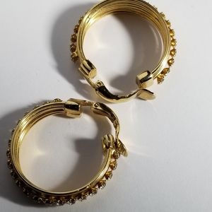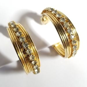 Relisted -Vintage hoop clip on earrings gold tone clear rhinestones