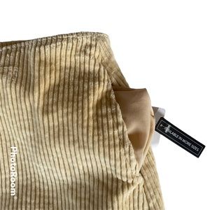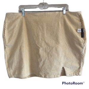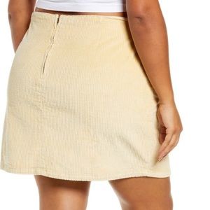 Details: High waist, corduroy, mini slit/ notched hem, back zipper, two front pockets, plus size