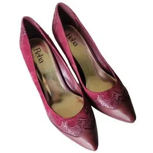 Reba Leather and Suede Burgundy Heels - FREE SHIPPING