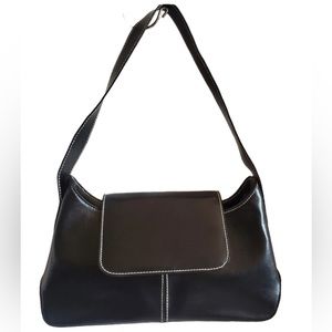 BLACK BAGUETTE FAUX LEATHER SHOULDER HANDBAG Y2K