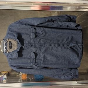Men's casual button down knit shirt 100% cotton, size XL. Blue textured knit pattern.