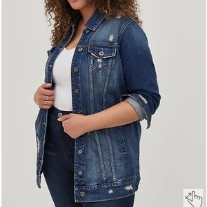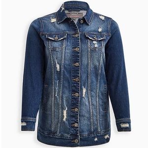 💙NWT Torrid Distressed Longline Medium Wash Denim Jacket 3X💙