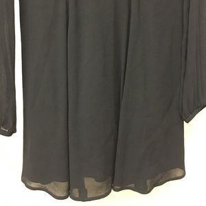 The Delancey Dress is a georgette fit and flare mini dress with a deep keyhole and button closure at the neckline - so it keeps you covered while still showing a bit of those special parts. Long sleeves with elastic at the cuffs. V back with zip closure. Fitted through the bodice and waist then the skirt kicks out. Lined. Made from 100% viscose.