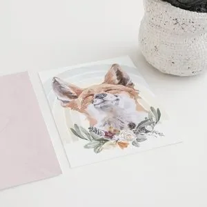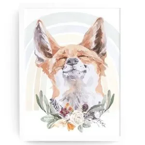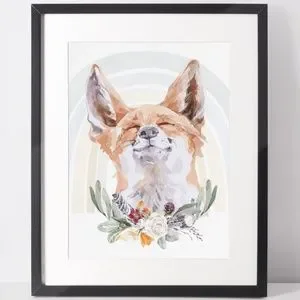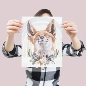 Watercolor Floral Red Fox Wall Art Illustration Print Poster Card Unframed